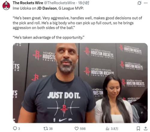 從五星高中生到 NCAA 失意者,從 NBA 邊緣人到發(fā)展聯盟 MVP,如今又得到火箭主帥的力挺,JD - 戴維森的每一步都在跟 “不被看好” 較勁。